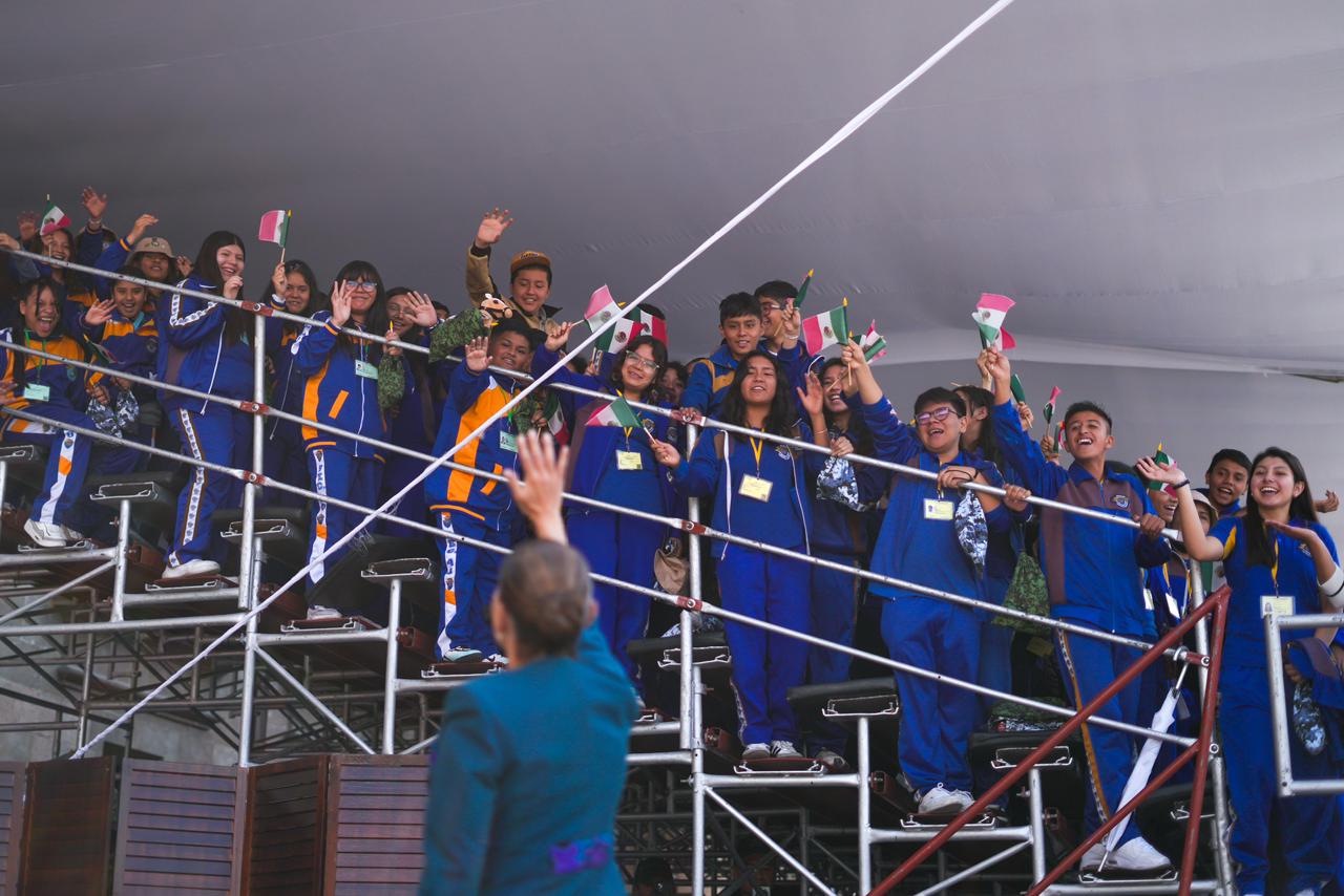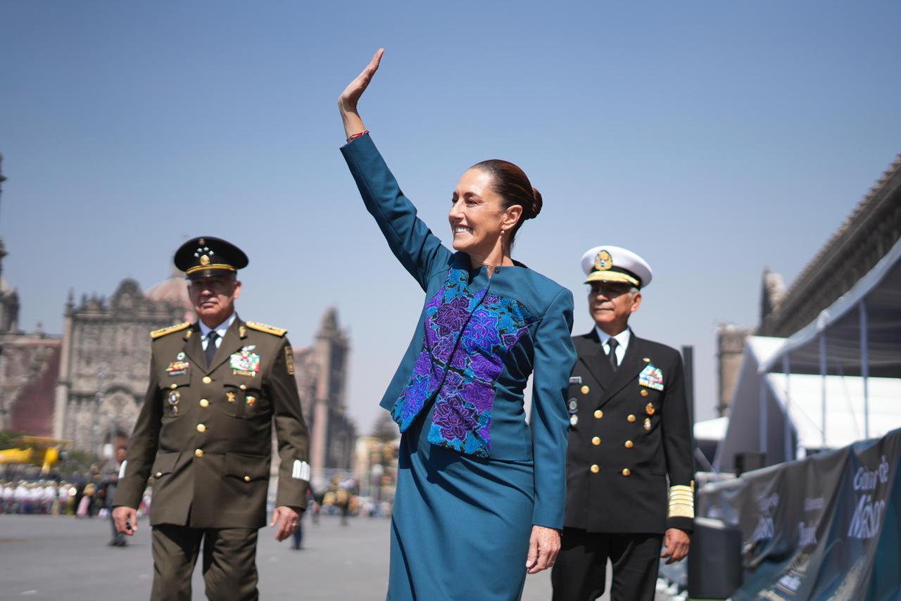 Sheinbaum Pardo realizó el izamiento de la bandera monumental, además de pasar revista a las tropas.