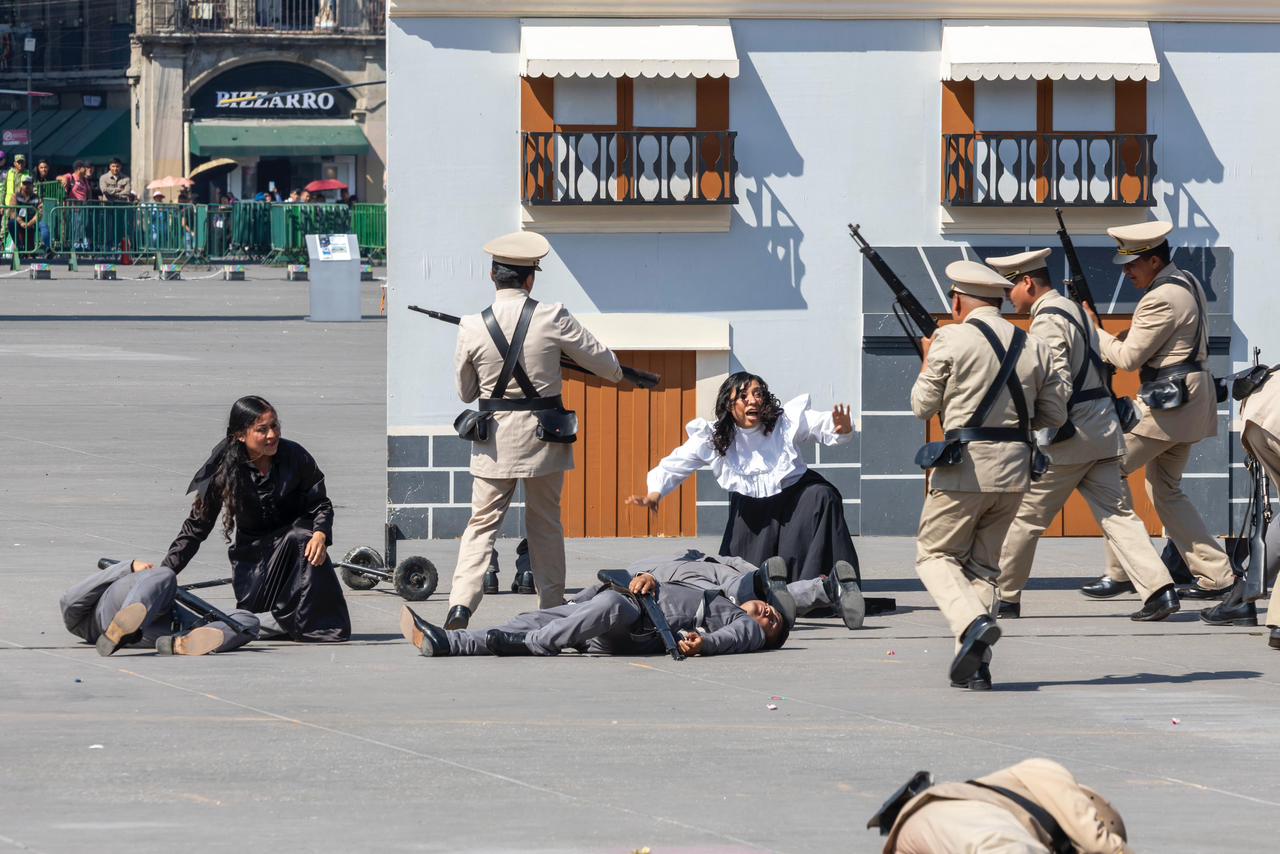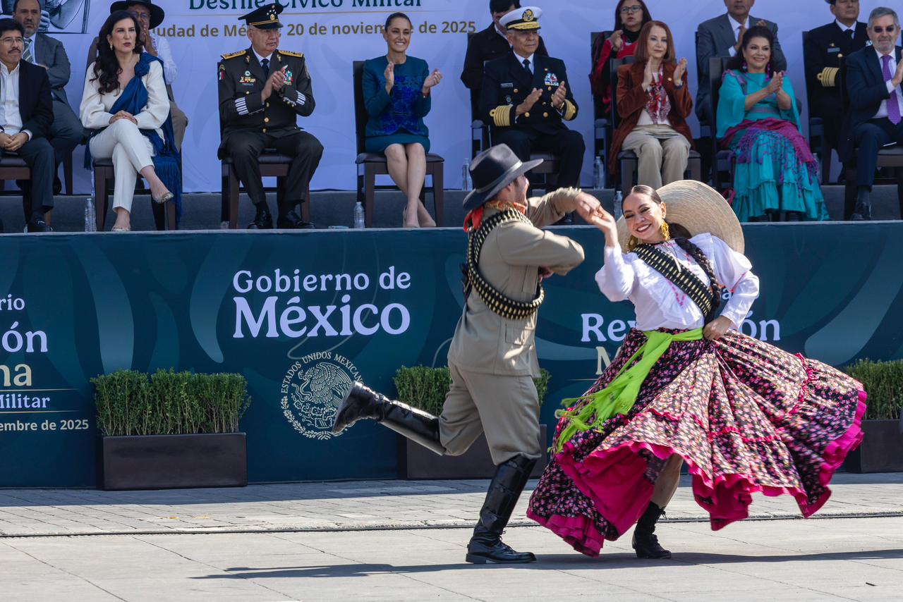 Como parte de la conmemoración, la mandataria mexicana presenció la declamación “Lealtad: Ayer y Hoy” a cargo de dos cadetes del Heroico Colegio Militar, la escenificación de la Revolución Mexicana a cargo de mil 910 integrantes del Ejército, Fuerza Aérea y Guardia Nacional, así como de un popurrí de bailables revolucionarios por parte del Mariachi de la Secretaría de Defensa Nacional.