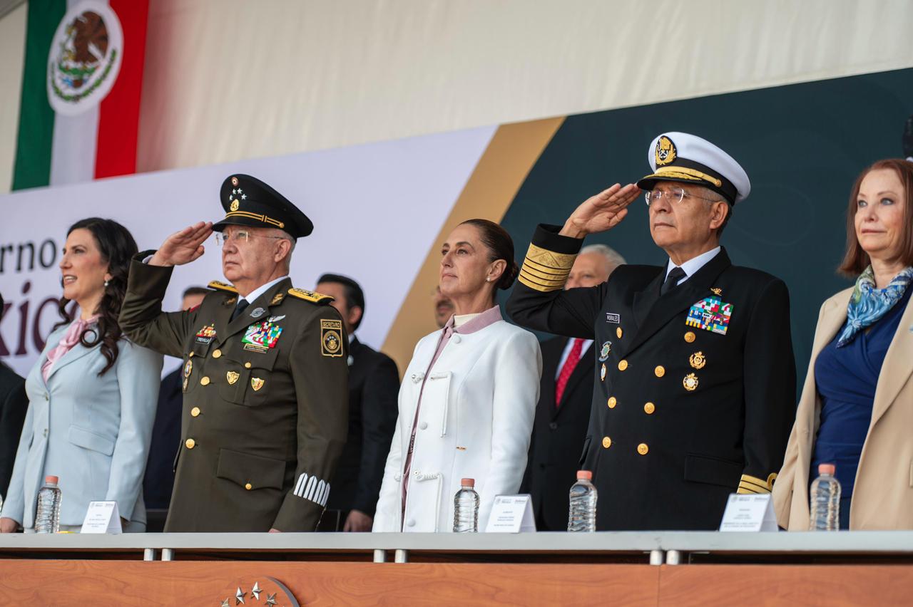 La acompañaron el secretario de la Defensa Nacional, el general Ricardo Trevilla Trejo, y el titular de la Secretaría de Marina, el almirante Raymundo Pedro Morales.