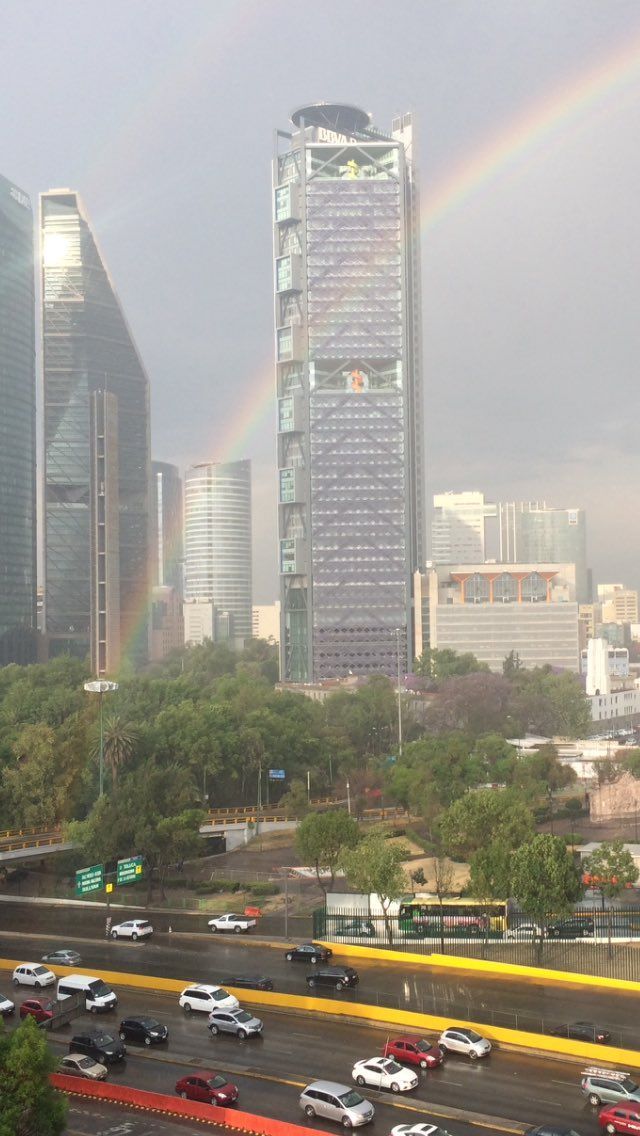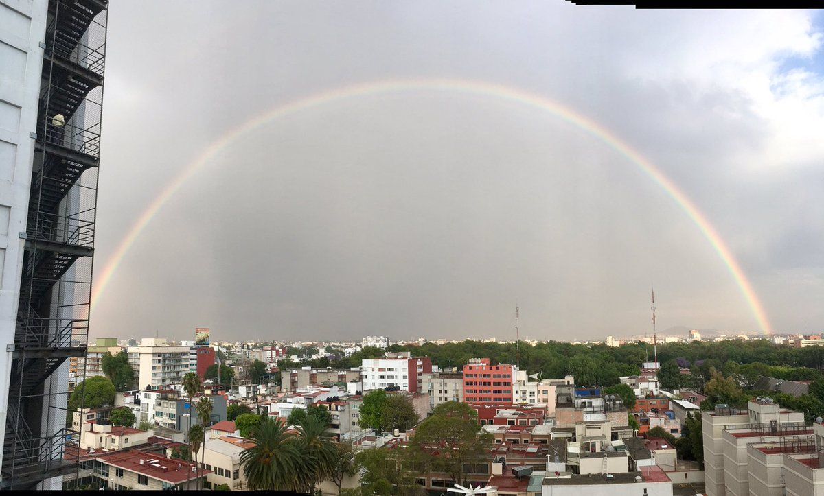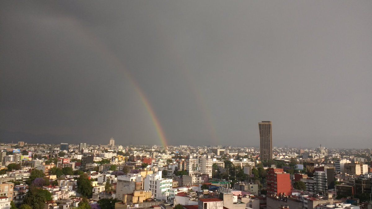 El resultado de las lluvias y el sol de esta tarde en el Valle de México ha generado uno de los fenómenos ópticos y meteorológicos favoritos de todos: la aparición del arcoíris.