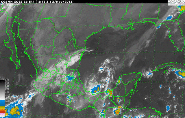 Se espera que desde hoy y hasta el jueves, este sistema se extienda sobre Sonora y Chihuahua, asociado con el sistema de baja presión de núcleo frío y con la corriente en chorro, provocando lluvias menores a 25 mm en Chihuahua y Durango.