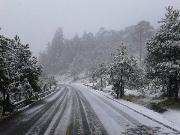 Además, caída de nieve o aguanieve en las cimas montañosas con altitudes superiores a los tres mil metros del Distrito Federal, Estado de México, Tlaxcala, Puebla y Veracruz, principalmente durante la madrugada y primeras horas de la mañana.