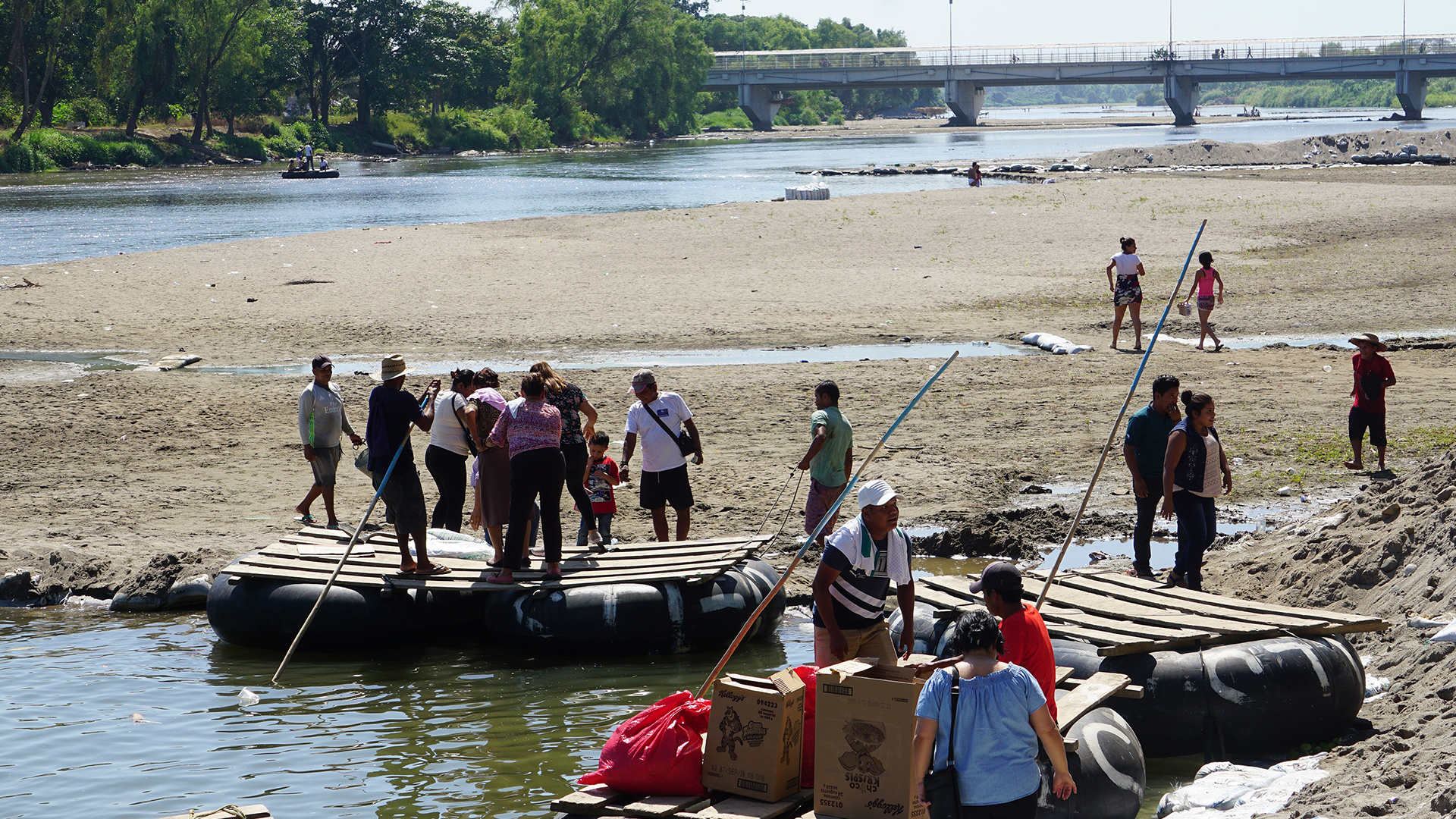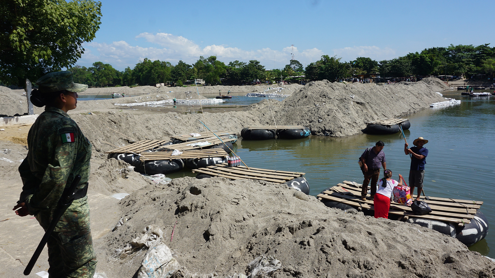 A la orilla del Suchiate y en el puente que divide a México y Guatemala se han desplegado miembros de Migración y de la Guardia Nacional.