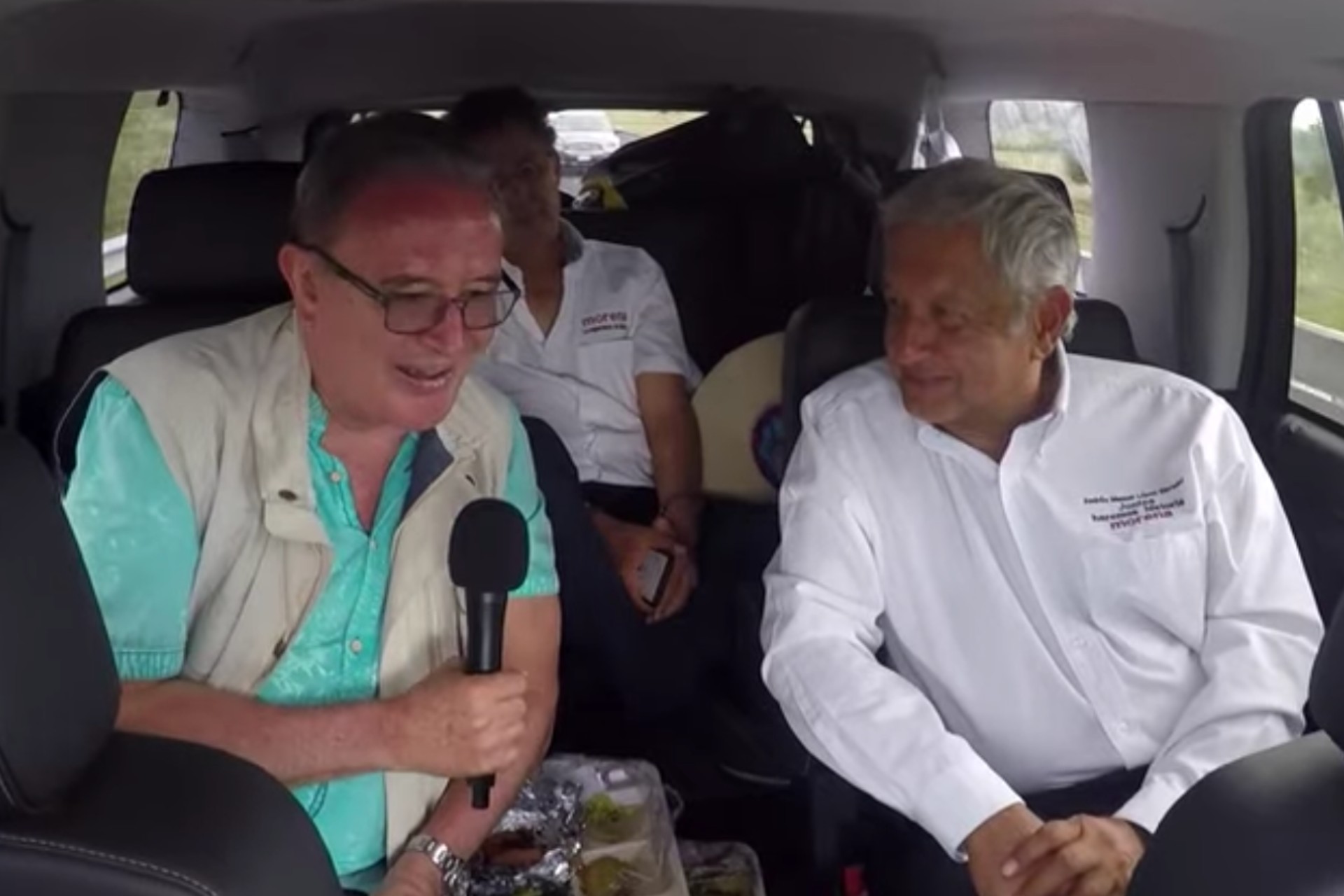 El mandatario mexicano reprodujo en el Salón Tesorería la primera entrevista que le hizo e comunicador en el año de 1996 en el estado de Tabasco, en una de sus luchas en defensa del petróleo de la región.