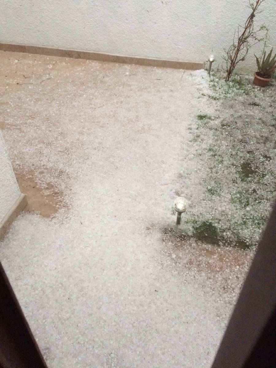 Además, el tamaño del granizo que ha caído en la zona es del tamaño de pequeñas pelotas, lo que aumenta la fuerza de la lluvia, señalan usuarios.