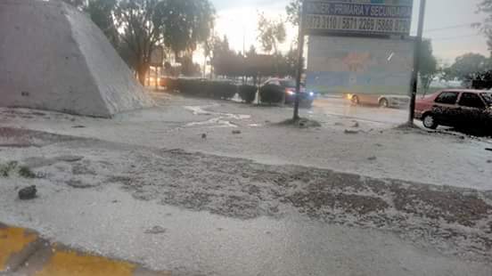 Usuarios de redes sociales han compartido diversas imágenes y videos de las fuertes precipitaciones acompañadas de caída de granizo que han azotado a dicho municipio de la zona norte del área metropolitana del Valle de México.