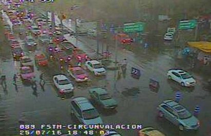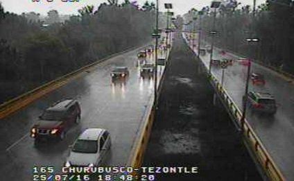 En el cruce de Circuito Interior Río Churubusco y Canal de Tezontle hay fuerte precipitación. Foto de @ciudad_segura