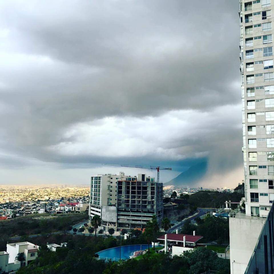 Fuertes precipitaciones acompañadas de intensas rachas de viento la tarde de este viernes ha afectado la tarde de este viernes a la ciudad de Monterrey y a su zona conurbada.