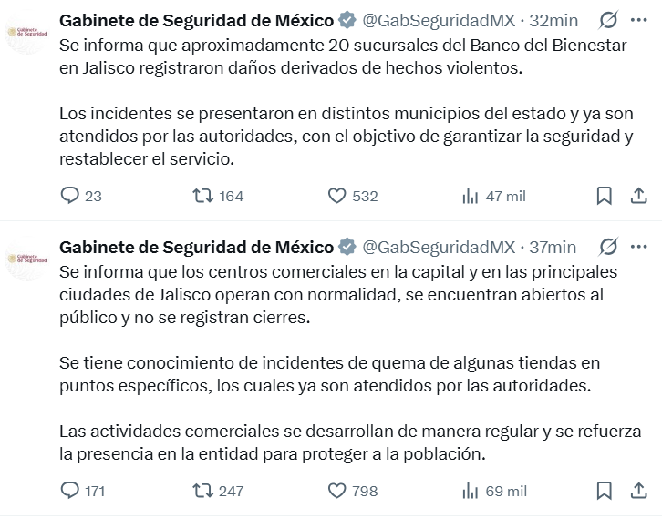 — Gabinete de Seguridad de México (@GabSeguridadMX) February 22, 2026