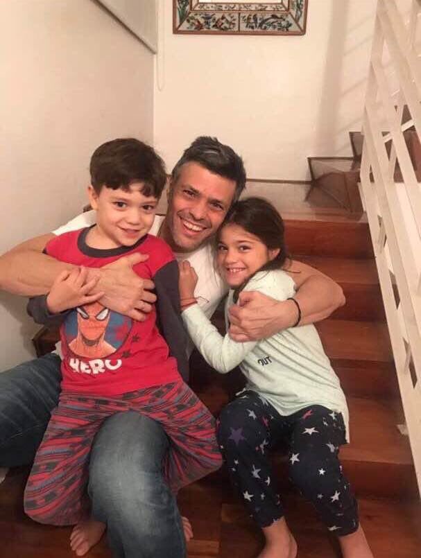 “Leopoldo López está en su casa de Caracas con Lilian (su esposa) y sus hijos. Aún no es libre, sigue bajo arresto domiciliario. Le sacaron de madrugada”, publicó Cremades.