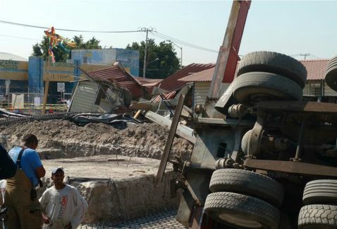En el municipio de Tlajomulco, Jalisco, se registró una volcadura de una grúa sobre una construcción de salones de clase, destruyendo por completo un aula provisional de la escuela primaria Francisco I. Madero de la colonia Santa Fe.