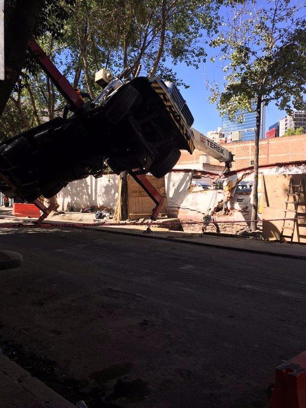 El incidente tuvo lugar este martes alrededor de las 11:00 h, cuando la grúa, para una excavación de la CFE, se ladeó en la calle Lisboa, casi en el cruce con General Prim, en la Colonia Juárez.