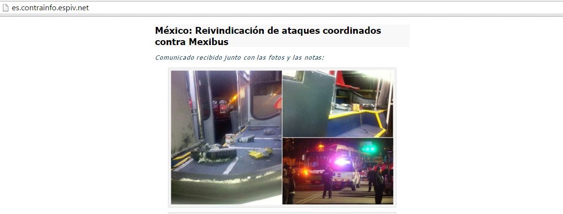 Mediante un comunicado publicado en el portal es.contrainfo.espiv.net/ el grupo anarquista negó que los ataques hayan sido contra los operadores del transporte o que se encuentran en contra del servicio de transporte.
