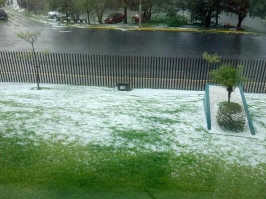 Usuarios de redes sociales capturaron en imágenes y videos la fuerza del agua por las calles, que en tiempos parece que son ríos, así como el granizo que cayó en algunas zonas de Guadalajara, cubriendo de blanco áreas verdes, banquetas y pavimento.