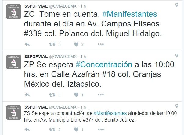 En su cuenta de Twitter @OVIALCDMX, indicó que a la misma hora, habrá otra protesta en el poniente capitalino en calle Azafrán, número 18, colonia Granjas de México, delegación Iztacalco, donde se ubica una delegación de la Procuraduría Federal del Consumidor (Profeco).