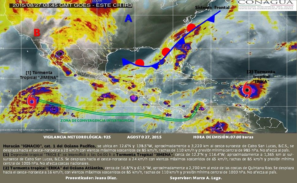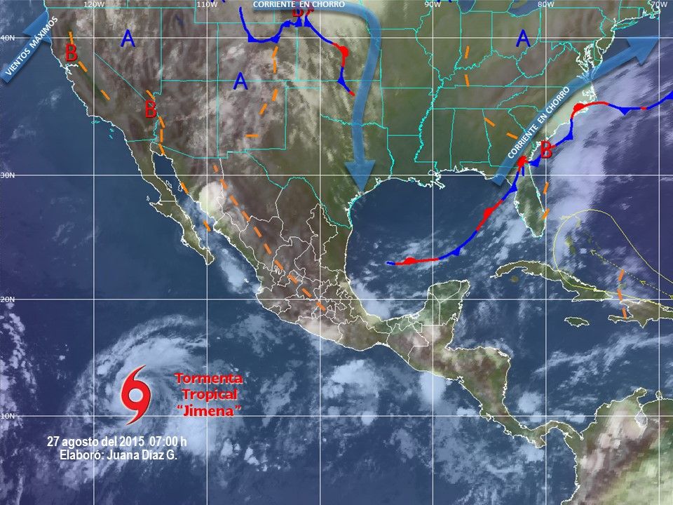 Además prevé precipitaciones de menor intensidad en Baja California, Baja California Sur, Sonora, Chihuahua, Coahuila, Nuevo León, Tamaulipas, San Luis Potosí, Zacatecas, Durango, Sinaloa, Nayarit, Colima, Guanajuato, Querétaro, Tlaxcala, Estado de México, Morelos, Quintana Roo y Distrito Federal.