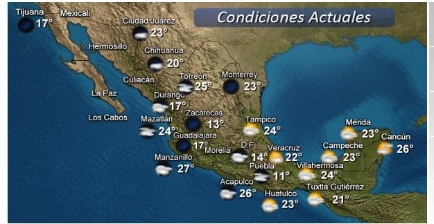 Mientras que las temperaturas serán de 35 a 40 grados en Baja California Sur, Jalisco, Puebla, Durango, Colima, Morelos, Michoacán, Oaxaca, Tabasco, Campeche, Yucatán y Quintana Roo.
