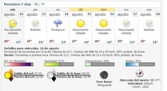 Finalmente, la Mesa Central tendrá cielo despejado a medio nublado, 60 por ciento de probabilidad de lluvias fuertes en Puebla y de menor intensidad en Guanajuato, Querétaro, Hidalgo, Tlaxcala y Morelos, además de clima fresco a caluroso y viento de dirección variable de 15 a 30 kilómetros por hora con rachas en zonas de tormenta.
