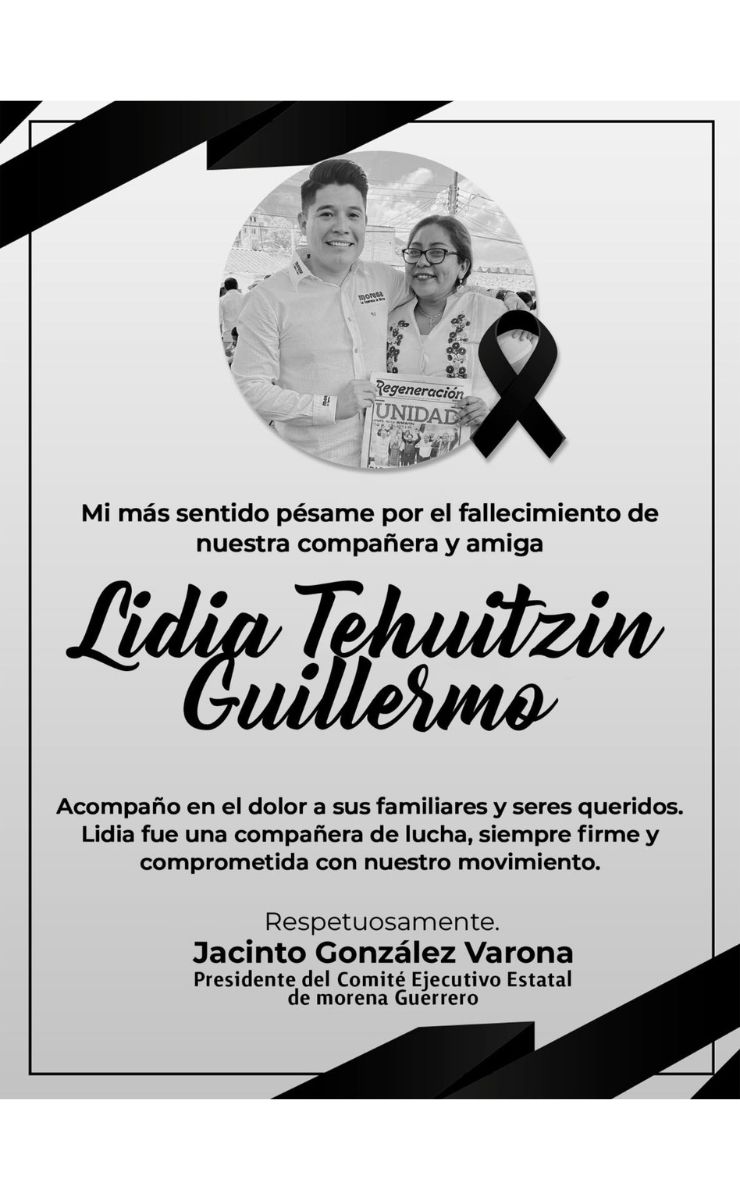 La muerte de la excandidata a la Presidencia Municipal de Zitlala fue confirmada por Jacinto González, dirigente estatal de Morena