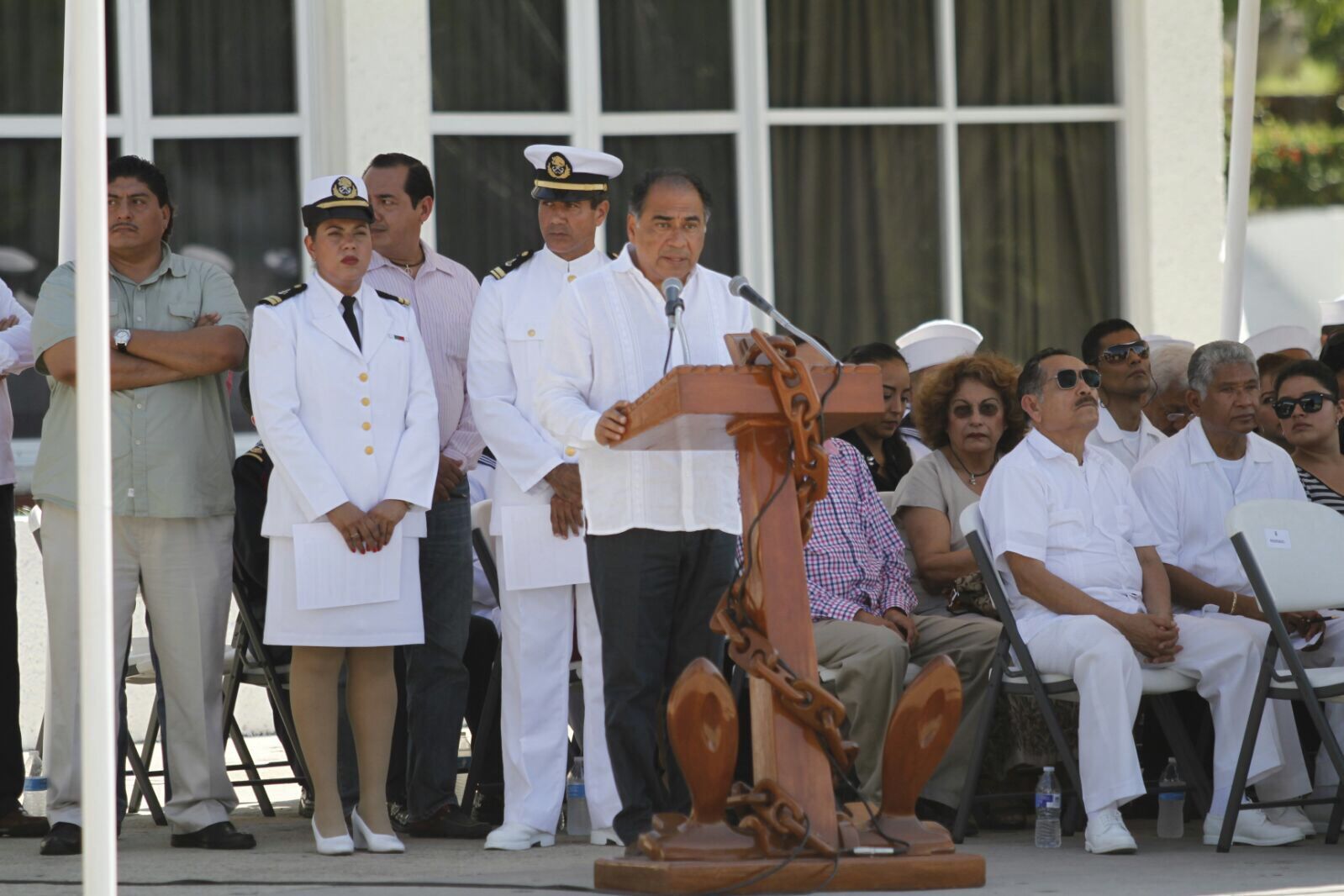 A este acto asistieron el comandante de la 27 Zona Militar, Adelfo Castillo López; la presidenta del Tribunal Superior de Justicia en el estado, Lambertina Galeana Marín; el secretario de Seguridad Pública en el estado, Pedro Almazán Cervantes; el diputado local y presidente de la Mesa Directiva del Congreso estatal, Carlos Reyes Torres. En representación del alcalde de Acapulco, Evodio Velázquez Aguirre, asistió Ariel Meza Loaeza; el Capitán de Puerto de Acapulco, Gustavo Gómez Rangel; el Jefe de Estado Mayor de la Octava Región Naval, Mario Maqueda Mendoza y el presidente del Consejo Ciudadano de Seguridad Pública y Desarrollo Económico, Jorge Ochoa Jiménez.