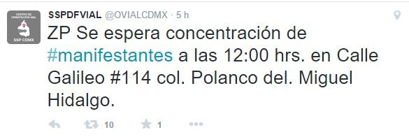 En su cuenta de Twitter @OVIALCDMX, dio a conocer que al mediodía, se espera concentración de manifestantes en calle Galileo, número 114, colonia Polanco, delegación Miguel Hidalgo, donde se ubica la embajada de España en México.
