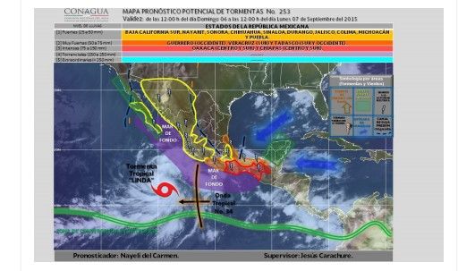 Huracán Linda provoca lluvias fuertes en varios estados del país - mapa1
