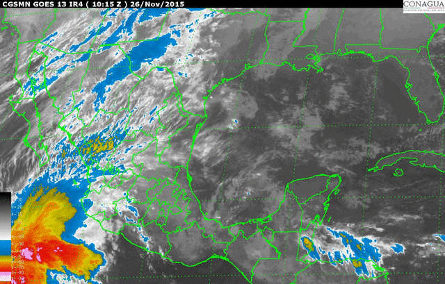 El fenómeno se localiza a 810 kilómetros al suroeste de Cabo Corrientes, Jalisco, y a 470 km al suroeste de Isla Socorro, Colima, de acuerdo a un comunicado de la dependencia.