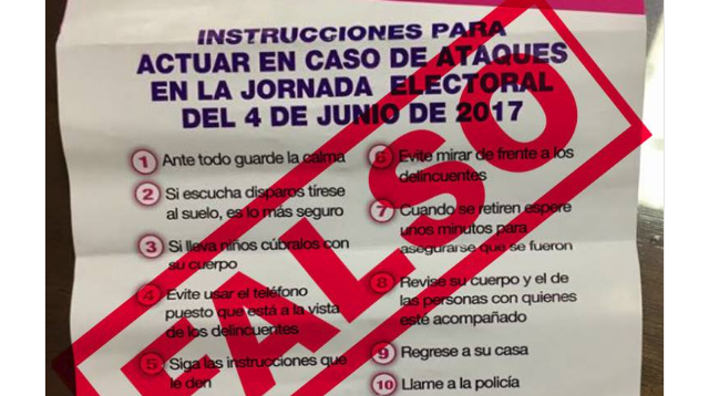 Luego de que se diera a conocer la circulación de un volante que se titula ‘Instrucciones para actuar en caso de ataques en la jornada electoral del 4 de junio de 2017’, el cual usa el nombre e imagen del Instituto Electoral del Estado de México (IEEM), este órgano ha señalado que es falso.