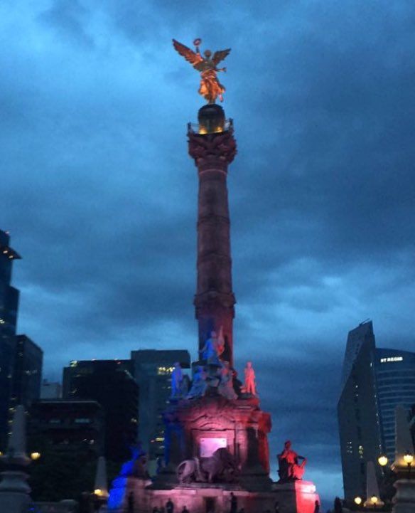 A través de su cuenta de Twitter, el gobierno informó: “Como símbolo de solidaridad con Francia, el Ángel de la Independencia se ilumina con los colores de su bandera”.