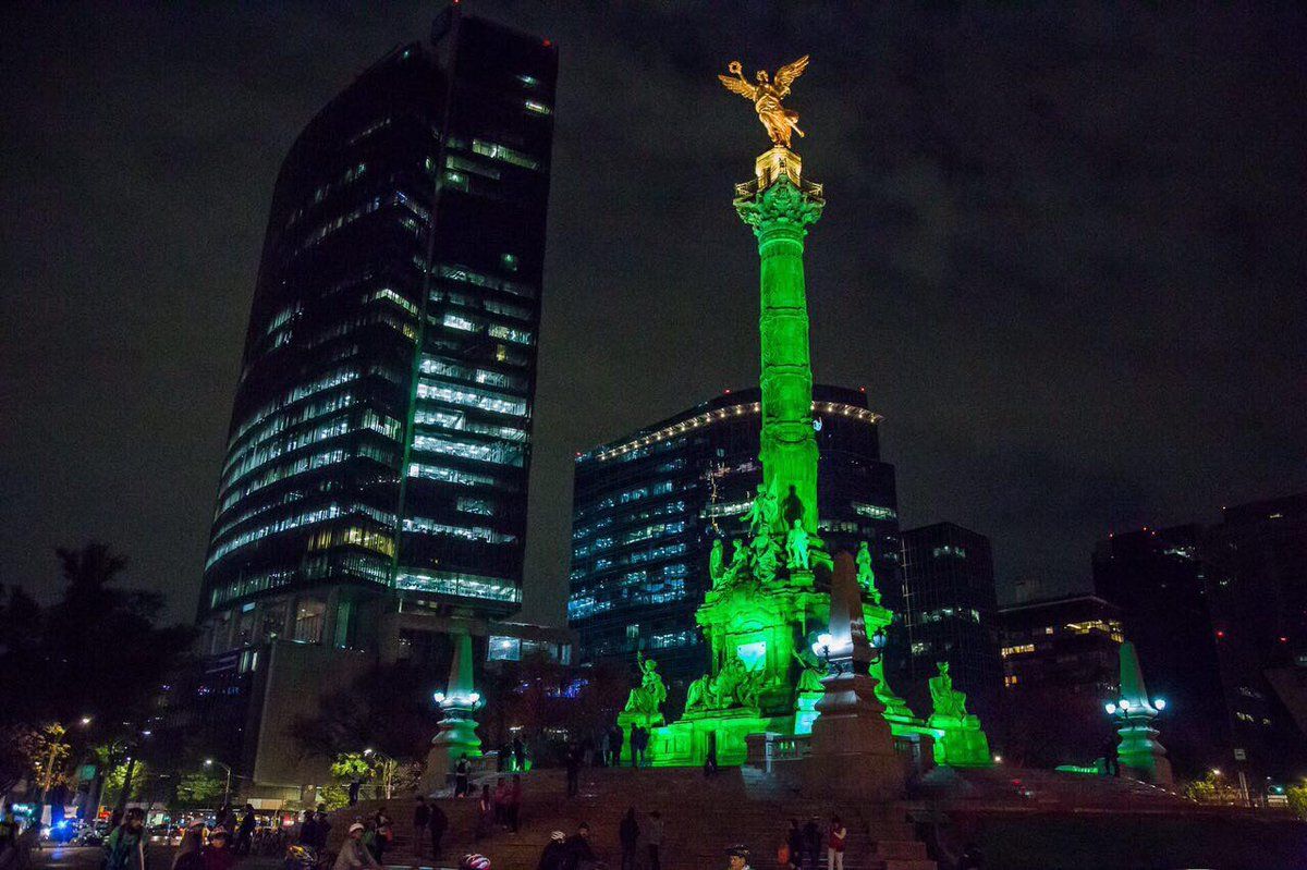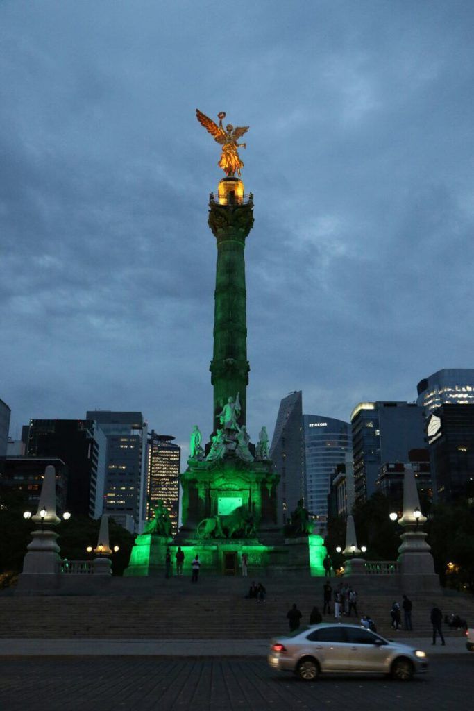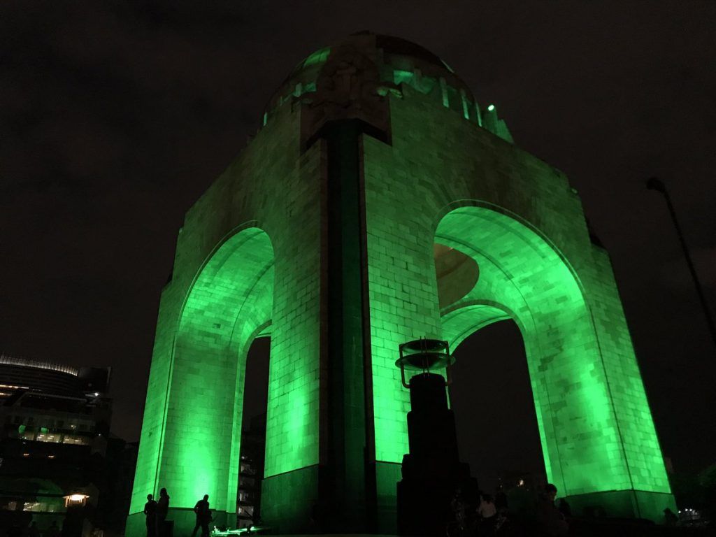 Los edificios de la Ciudad de México se pintaron de verde para reafirmar el compromiso con la lucha contra el cambio climático