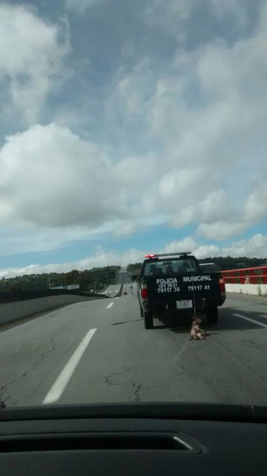 Este día ha circulado a través de redes sociales unas fotografías en las cuales se puede observar a una patrulla identificada con el número 0069 del municipio de Zempoala, la cual jalaba un perro amarrado del cuello.