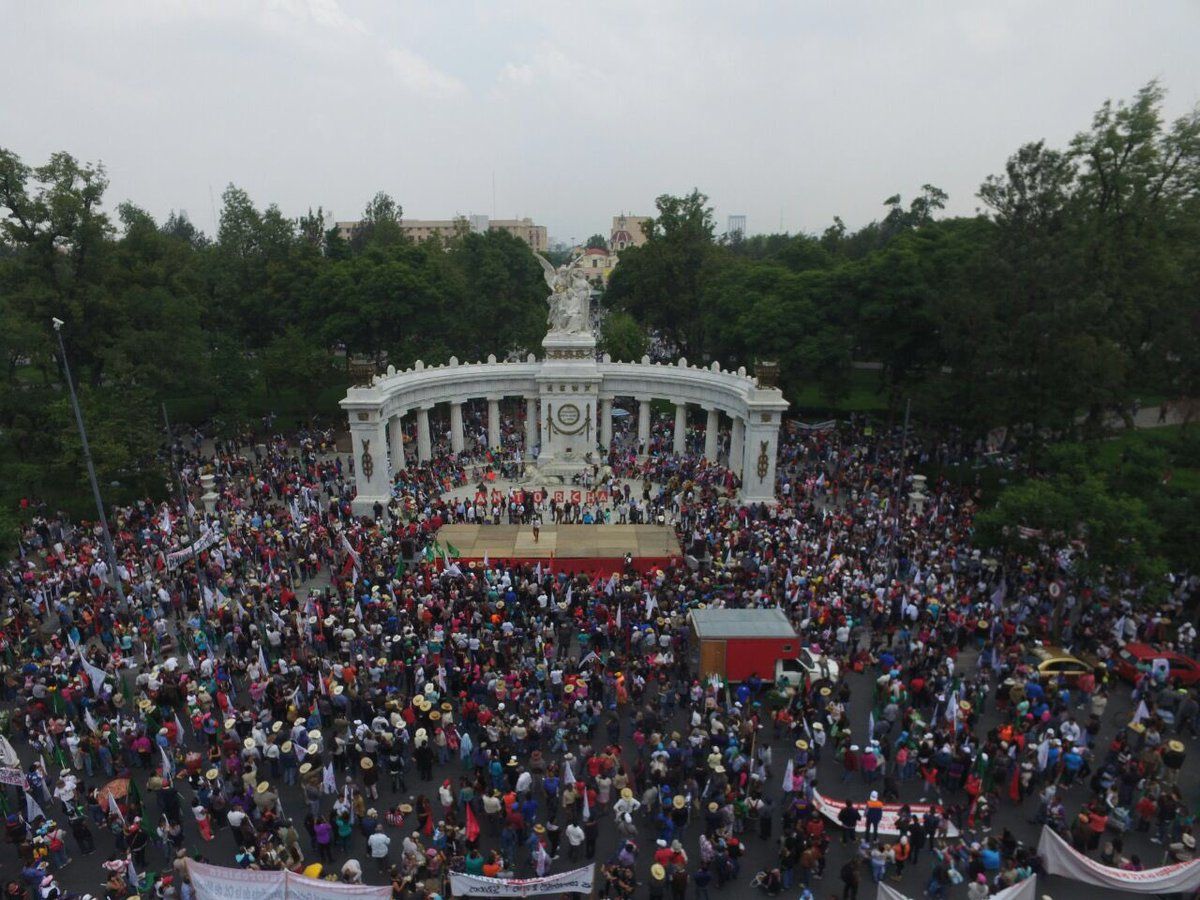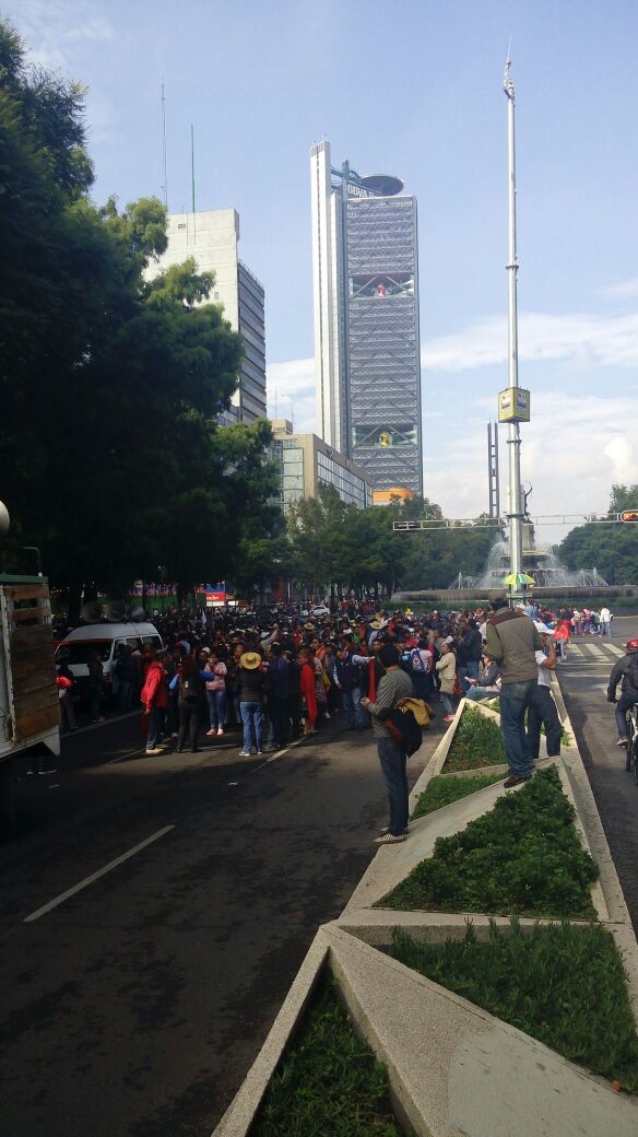 Integrantes de la agrupación Antorcha Campesina se manifiestan en el Hemiciclo a Juárez, luego de que elementos de la Secretaría de Seguridad Pública (SSP) capitalina les bloquearan el paso en avenida Juárez.