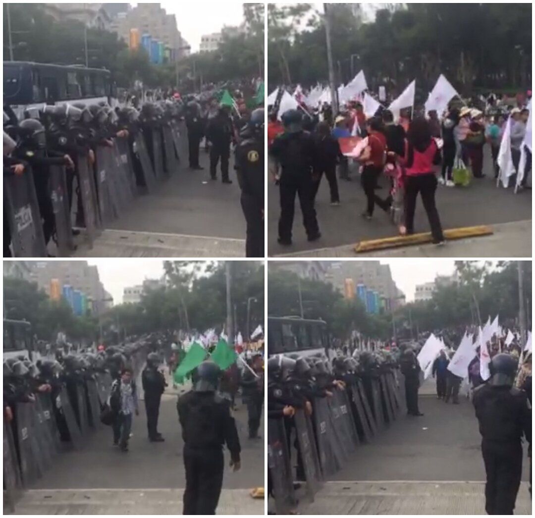 Los manifestantes buscaban llegar a la Asamblea Legislativa del Distrito Federal (ALDF) para manifestarse contra Miguel Ángel Mancera, quien este día presenta su Cuarto Informe de Gobierno, por lo que realizan un mitin en el Hemiciclo.