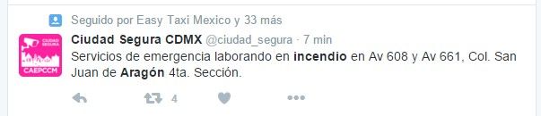 Hace unos momentos, usuarios de las redes sociales reportan un incendio en Avenida 608 y Avenida 661, colonia San Juan de Aragón 4a. Sección, a la altura de Metro Villa de Aragón.