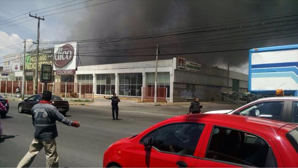 De acuerdo con reportes locales, el incendio ocurrido esta tarde en la zona industrial de San Nicolás, en Tlalnepantla, ocurrió al estallar un tanque de residuos químicos de una empresa aledaña a las bodegas de una mueblería Dico y de la tienda de manualidades Fantasías Miguel.
