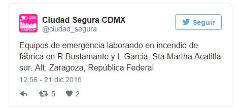 Por su parte el Centro de Atención a Emergencias y Protección Ciudadana de la Ciudad de México informó a través de su cuenta de Twitter que en la zona ya se encuentran laborando equipos de emergencia.