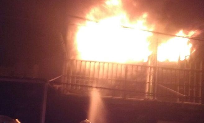 A las 02:22 h quedó controlado el incendio en el domicilio de un nivel y continuó el combate indirecto a las otras dos viviendas