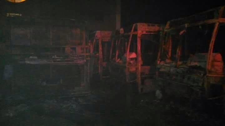 Al menos catorce unidades de Transportes Unidos de Huitzilac (TUH), así como otros dos vehículos particulares fueron consumidos por el fuego mientras permanecían estacionados en la terminal de este sistema de transporte.