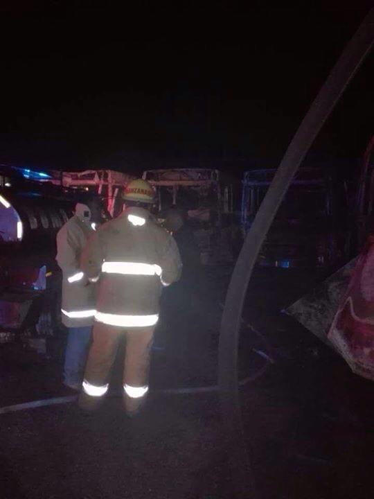 Incendian en la madrugada de este sábado terminal de transporte público de Huitzilac, Morelos, dejando 14 unidades consumidas por el fuego