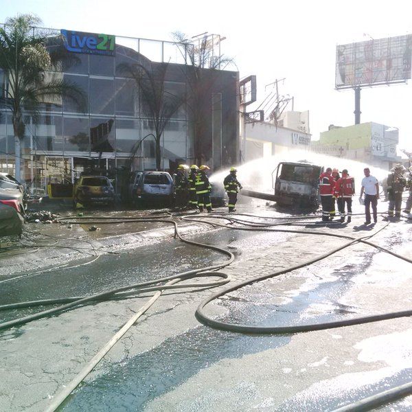 Al lugar se trasladaron unidades de los bomberos, que controlaron el incendio, el cual afectó a por lo menos ocho vehículos más, de los cuales siete quedaron calcinados.