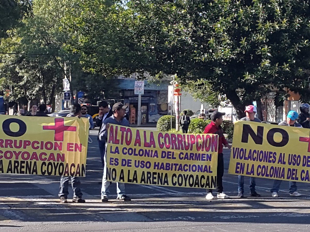 Vecinos de la colonia Del Carmen se manifiestan en protesta por la construcción de la Arena Coyoacán