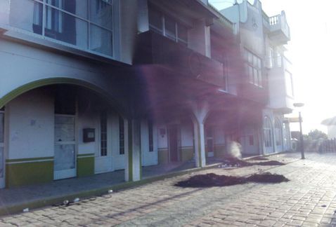 Pobladores de las comunidades aledañas quemaron llantas y rompieron vidrios de la alcaldía, luego de que Julio Pulido López, presidente municipal, se negara a recibir a los manifestantes .