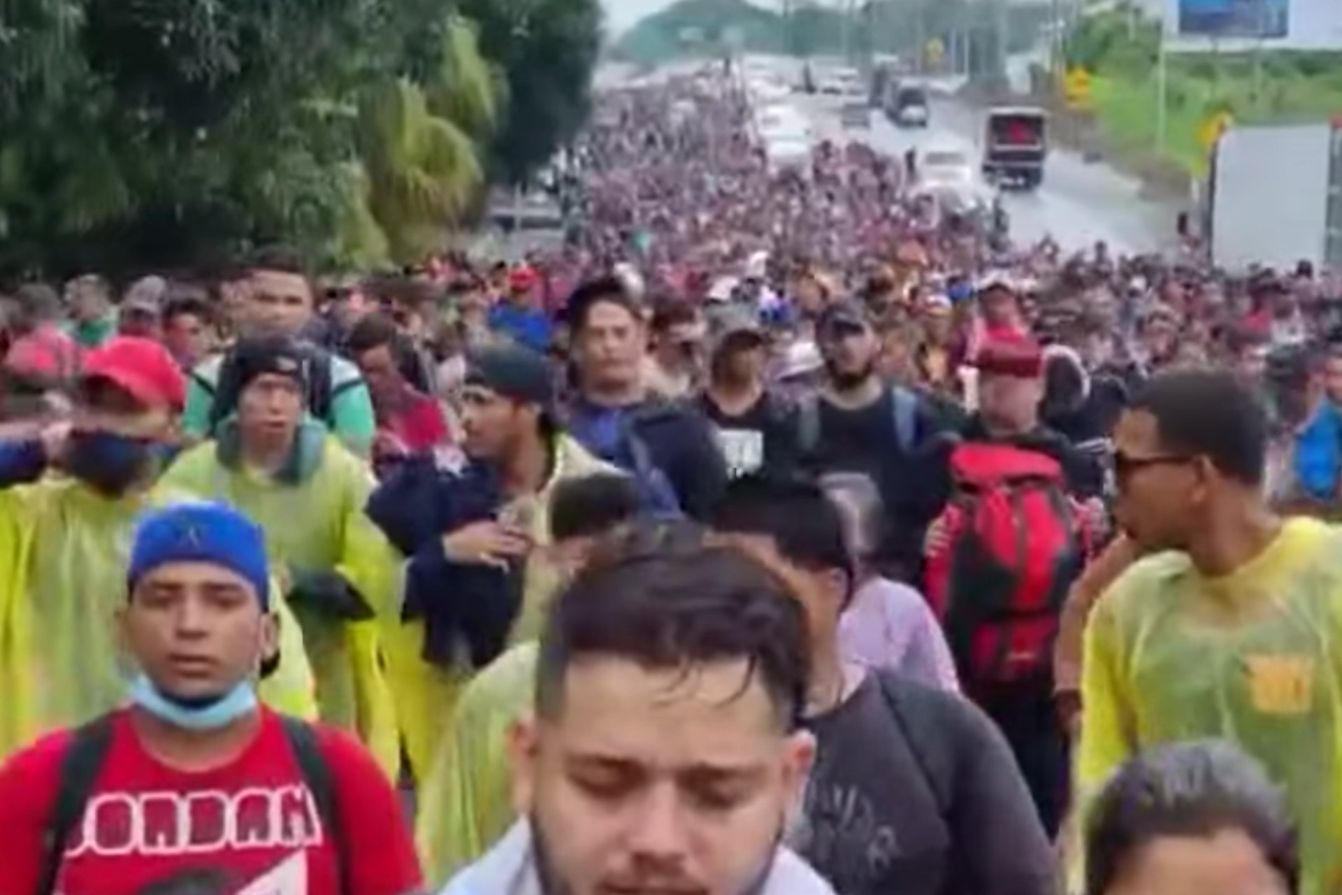 Bajo una fuerte lluvia, una inédita caravana de cerca de 15 mil migrantes partió de Chiapas con rumbo a los EE.UU.