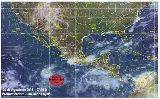 El Servicio Meteorológico Nacional (SMN) monitorea de manera constante la zona de inestabilidad ubicada al sur-suroeste de las costas de Jalisco y Colima, debido a que en las próximas 48 horas se podría convertir en ciclón tropical.