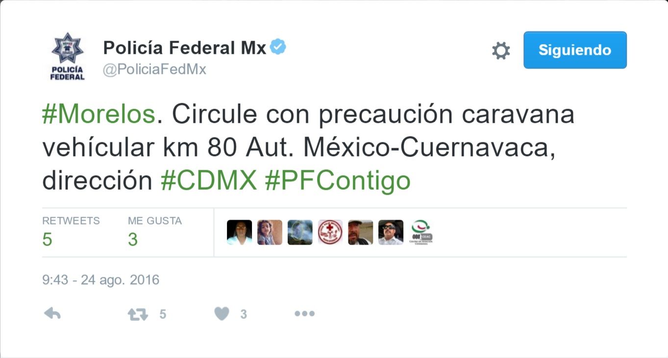 Por su parte, la Policía Federal, en una reciente publicación en su cuenta de Twitter, informó del paso de la caravana vehicular sobre la autopista en dirección a la Ciudad de México.