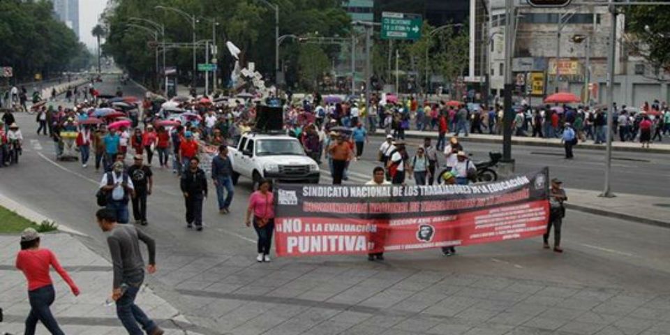 Los maestros se encuentran manifestándose sobre Paseo de la Reforma, a la altura de la Bolsa Mexicana de Valores (BMV), en dirección a Eje 1 Poniente, en donde realizarán un mitin en la Secretaría de Gobernación.