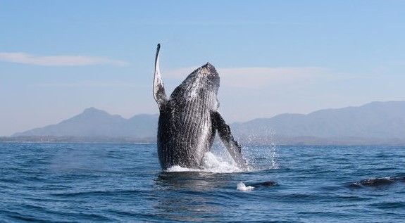 “Este encuentro de mamíferos gigantescos es todo un show para los visitantes a Riviera Nayarit, ya que realizan saltos que permiten ver en ocasiones más de la mitad del animal fuera del agua, que mide entre 12 y 16 metros de largo, con un peso de entre 30 y 40 toneladas” explicó.