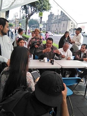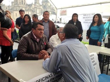Dos integrantes de la Asamblea Legislativa del Distrito Federal instalaron “sus oficinas” de atención en la banqueta de la Plaza de la Constitución, debido a falta de espacios asignados a Morena.