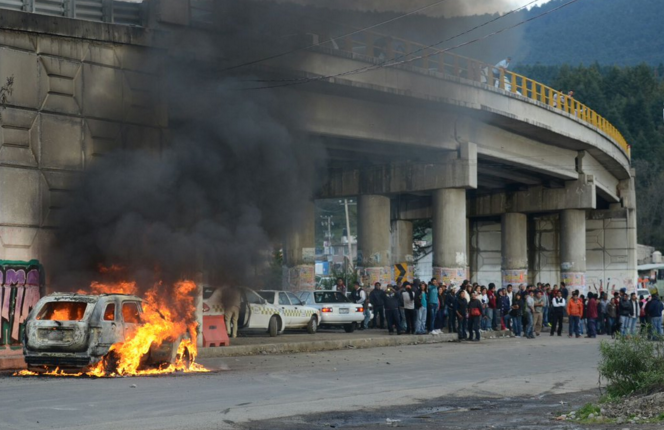 Los ladrones fueron trasladados al Ministerio Público por elementos del CESC, lo que enardeció más a los vecinos del lugar, por lo que prendieron fuego a dos vehículos en el cruce del Puente a Chalma y apedrearon a patrullas.