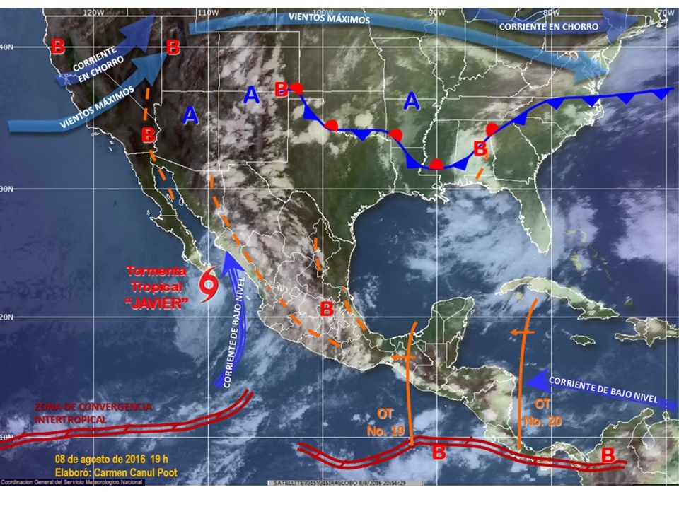 También se señaló que tras lo observado en las últimas dos horas, rapidamente disminuye la conveccion y nubosidad dentro de la tormenta tropical Javier.